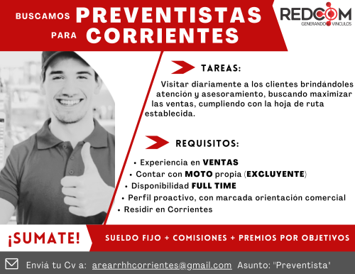 Envianos tu CV a arearrhhcorrientes@gmail.com