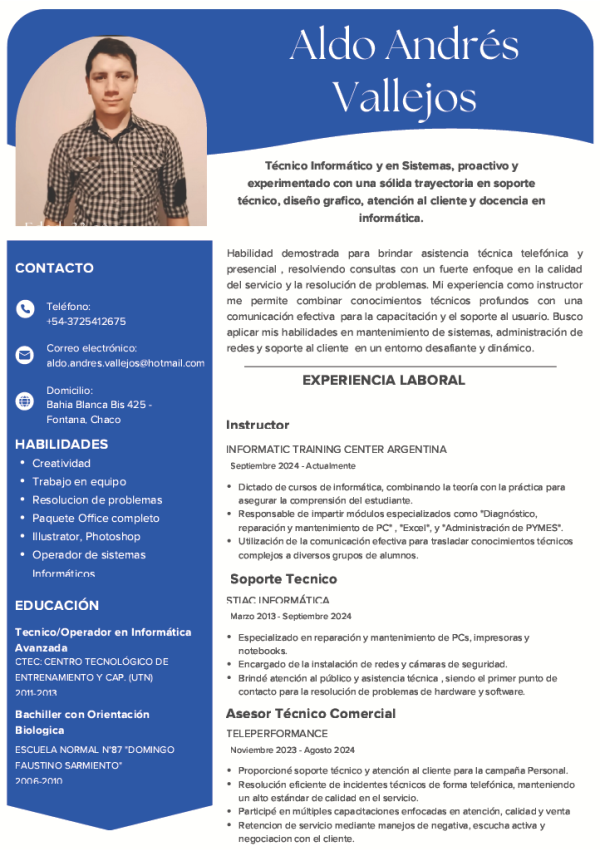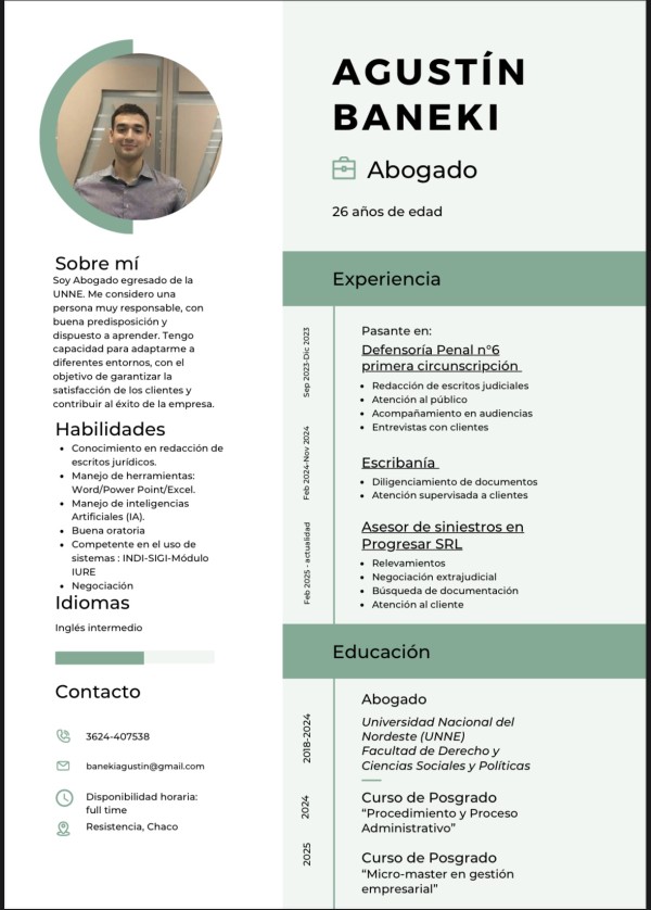 El lugar de trabajo es Resistencia, Chaco. Zona Centro.