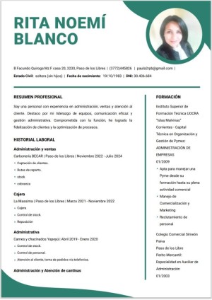 Soy Administrativa en Clínicas y Sanatorios. Licenciada en criminalística. Técnico Superior en Analisis Clínicos