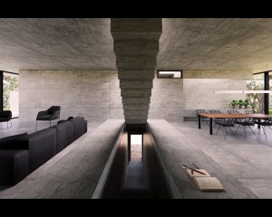 Render realizado en D5render imitando foto de la obra L4 House de Luciano Kruk arquitectos. Modelo realizado en Revit y render editado en Photoshop (sin IA)